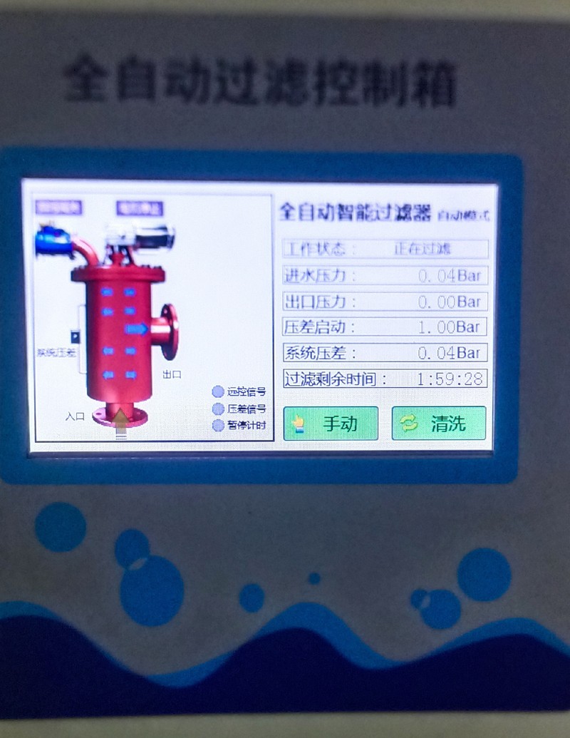 2) 清洗方式簡單,且清洗循環(huán)電子監(jiān)控,可實現(xiàn)自動清洗排污。。全自動自清洗過濾器控制系統(tǒng)中的各參數(shù)均可調節(jié)。